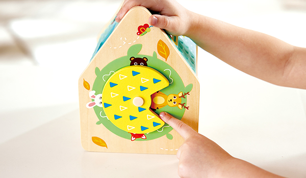 Knock knock! Who’s in the house? This charming little shape sorter is home to a number of cute bugs and animals that need your child’s help to fit into their home! Each colourful critter shape is designed to fit through matching slots in the house, challenging young minds’ problem-solving skills while developing their fine motor movements.