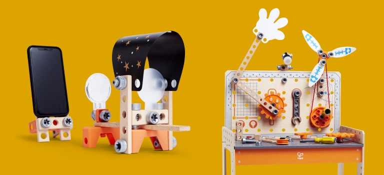 Get started on the road to becoming a scientist with this cool inventor`s workbench containing over 10 different experiments! As children aged four and over complete each experiment, they will produce a fun new machine to teach them about science.