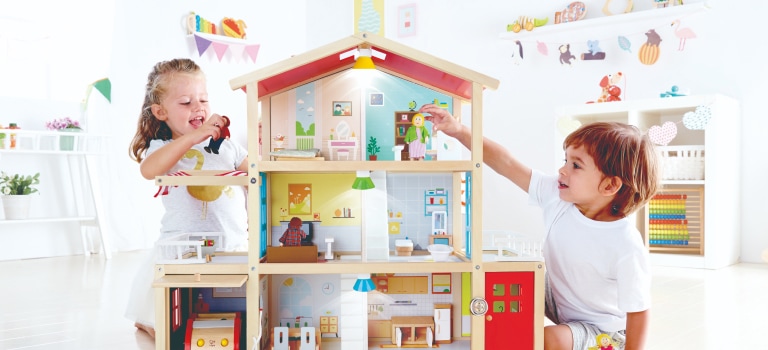 Unleash their imagination with Hape’s All Season House. With three levels and six rooms, it will spark your child’s creativity as they design the rooms with the included furniture and accessories. The sturdy wooden construction of this house means it will last as your child grows. The storytelling possibilities are endless as little homemakers can add figurines and accessories to customise their home just how they like it.
