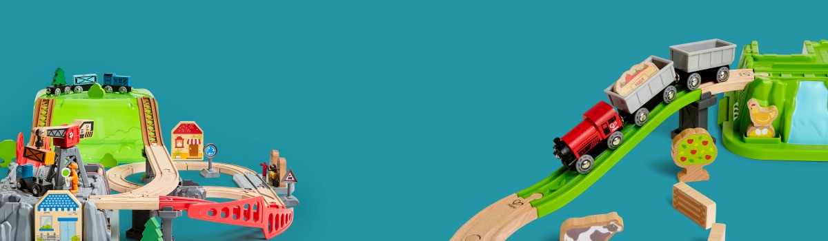 This railway set offers delights at every turn! A beautiful melody plays as you drive the jungle train over the Xylophone Melody Track. Then cheeky monkeys pop up as you pass their trees!